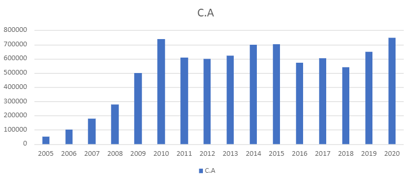 2005-2010 : Le CA connaît un taux de croissance annuel moyen de 71.8%.